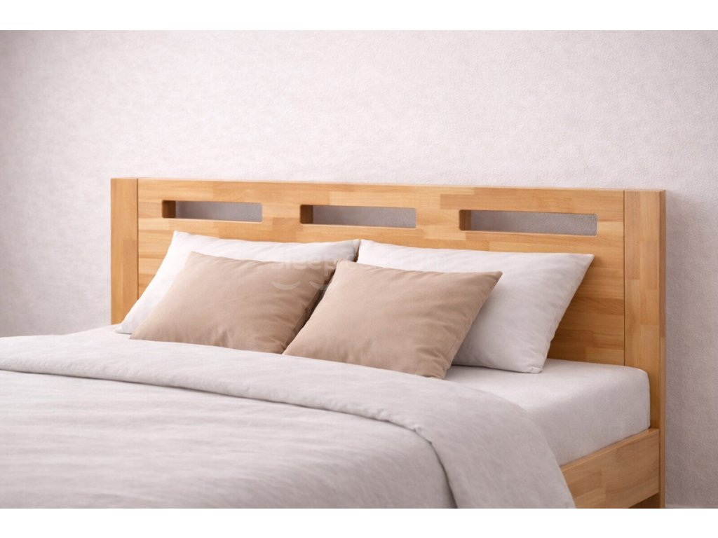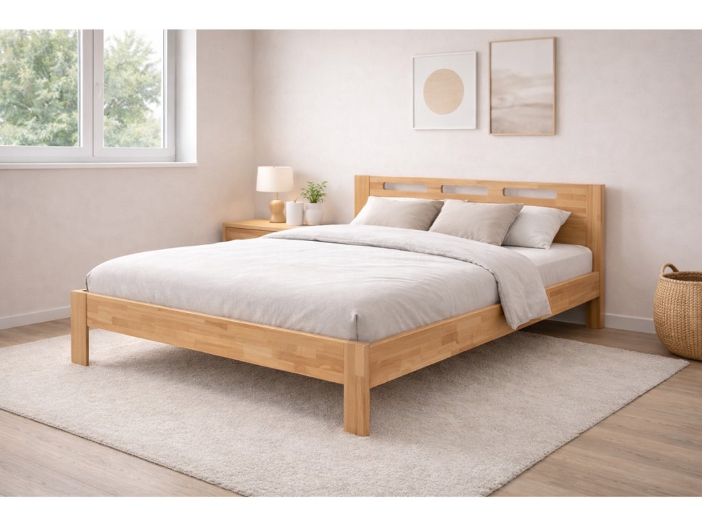 U dvoulůžkových velikostí 140–180 × 200 cm je čelo u hlavy navrženo se třemi rovnoměrně rozloženými mezerami, které posteli dodávají lehkost. Jednolůžkové varianty 90–120 × 200 cm mají čelo v provedení s dvěma mezerami, aby tvarově odpovídaly menšímu formátu postele.