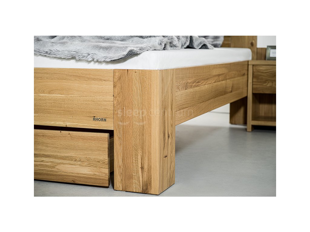 Grado Polster je masivní dubová postel v provedení průběžný divoký dub, v povrchové úpravě transparentní lak nebo olej nebo v barevném odstínu Platinum od českého výrobce Ahorn. Dub divoký je charakteristický svou výraznou přírodní strukturou dřeva, která je umocněna ponecháním trhlinek a suků.
