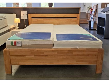 Masivní buková postel Veroli v provedení buk cink s čalouněným čelem od českého výrobce Ahorn.