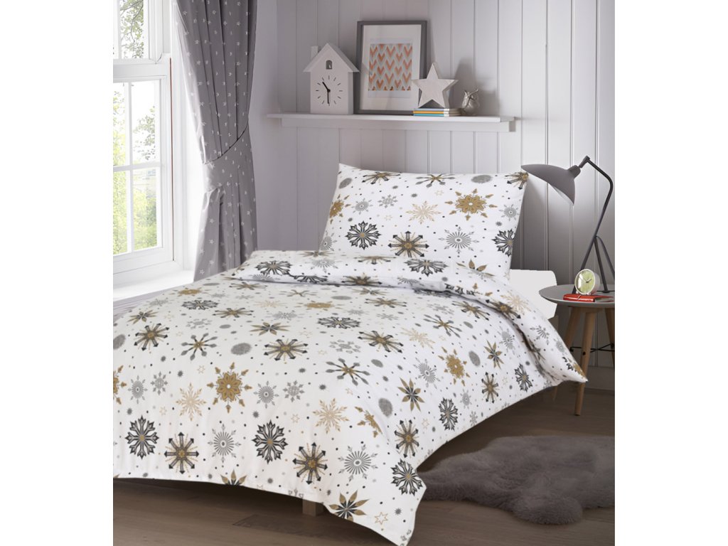 Vneste do své ložnice kouzlo zimy – flanelové povlečení Sněhové ornamenty vám zajistí útulné teplo, hebkost a elegantní atmosféru pro dlouhé zimní večery.