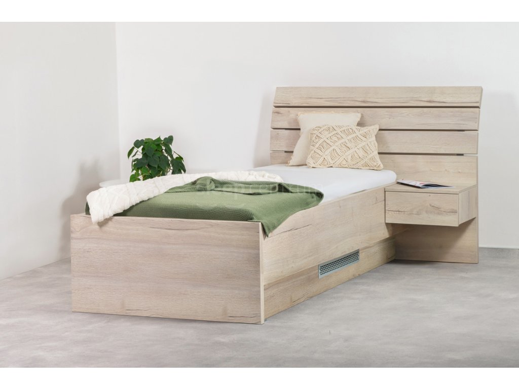 Jednolůžková postel Laglio s úložným prostorem je ideální volbou do dětských a studentských pokojů, pokojů pro hosty či menších interiérů. Díky lamelovému čelu a skrytému úložnému prostoru spojuje design s funkčností.