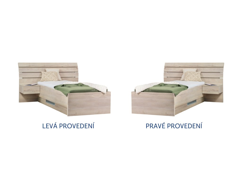 - Levé provedení znamená, že čelo u hlavy přesahuje na levou stranu, když se na postel díváme od nohou.