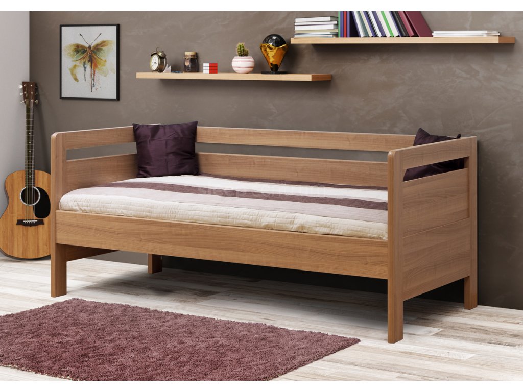 Postel Tina s vysokými čely v oblém provedení je vyráběna z kvalitní laminofolie firem Egger a Kronospan a má široké možnosti využití – např. do dětských či studentských pokojů, kde jistě oceníte možnosti úložného prostoru nebo zásuvek pod postel, které lze volitelně objednat.