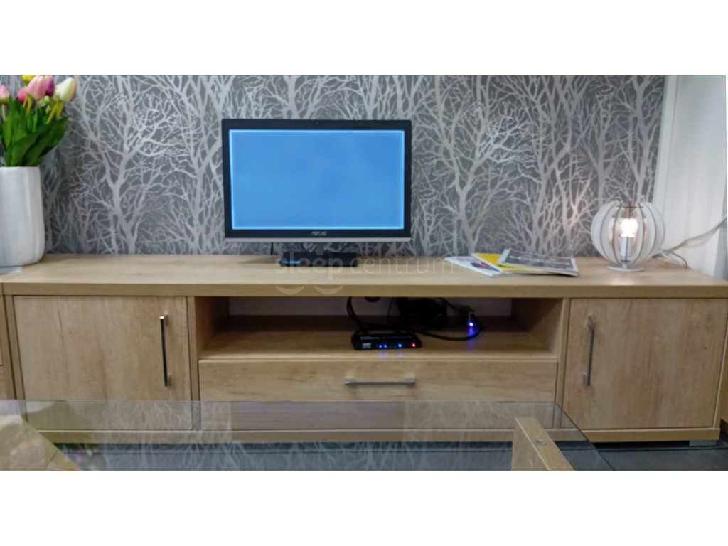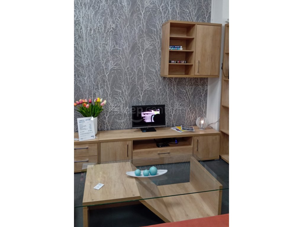 Obývací sestavu vyprodáváme z expozice. Výprodejový nábytek je vystaven na prodejně v ulici Jeremiášova, Praha 5, a tak může jevit menší známky opotřebení. Obývací sestava je vyprodávána v provedení imitace dřeva - Dub Nebraska.
