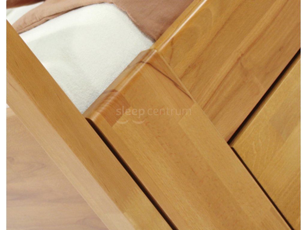 Postel je vyráběna v provedení jádrový buk masiv cinkovaná lamela (cink = parketový vzhled) nebo masiv průběžná lamela. V provedení masiv průběžná lamela má postel celistvý vzhled dřeva s jednotnějším odstínem.