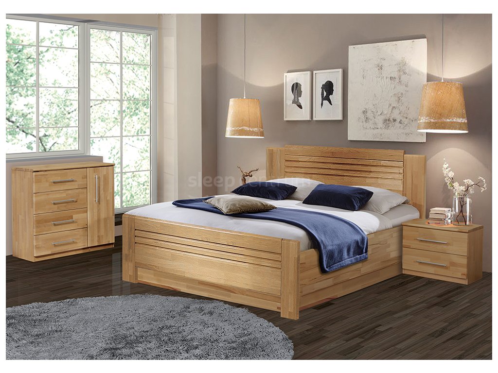Postel Sandra výklop od českého výrobce Vykona je vyrobena z kvalitního jádrového buku v provedení cink nebo průběžná lamela. Postel má stabilní a pevnou konstrukci a stane se elegantním doplňkem vaší ložnice po dlouhá léta spokojeného užívání. Součástí postele je velký vnitřní úložný prostor a výklopné lamelové rošty - čelní nebo boční výklop dle volitelného výběru zákazníka.
