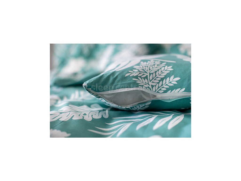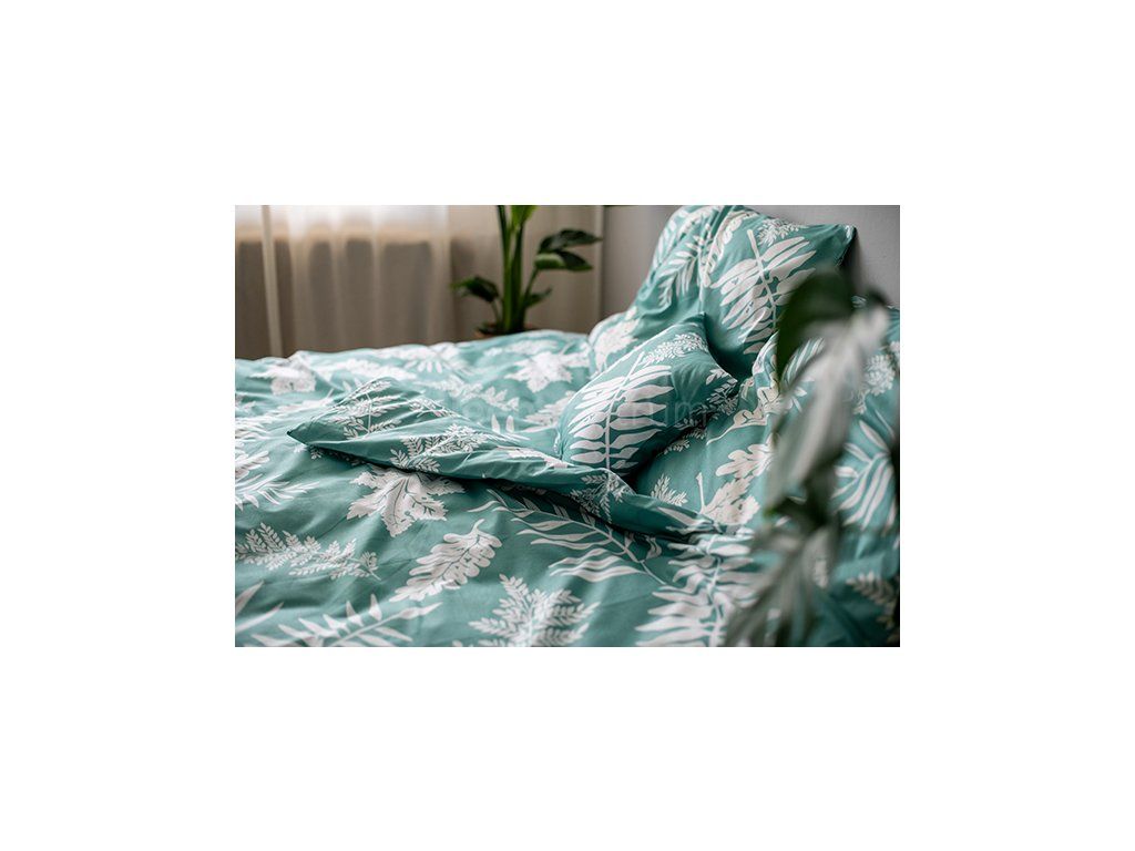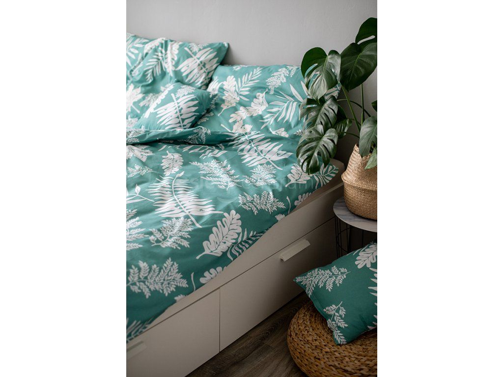 3dílné bavlněné povlečení Palma Green laděné do zelené a bílé barvy. Bavlněné povlečení perte naruby a odděleně od ostatního prádla vždy maximálně na 40 °C. Po vyprání povlečení ihned vyjměte z pračky a pověste ho. Povlečení žehlete na bavlněný program.