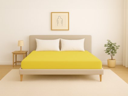 Napínací jersey prostěradlo v tmavě žluté barvě, vhodné pro matrace až do výšky 30 cm. Kvalita prostěradla je podtržena vysokou gramáží, která činí 190 g/m2.