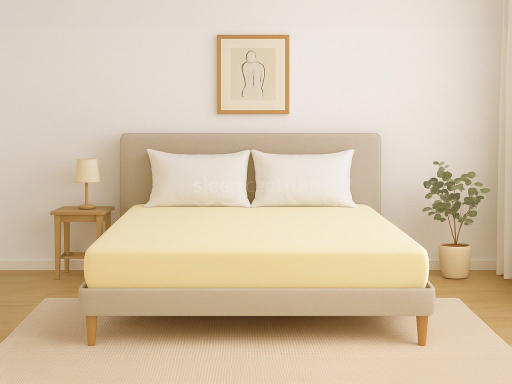 Napínací jersey prostěradlo v tmavě žluté barvě, vhodné pro matrace až do výšky 30 cm. Kvalita prostěradla je podtržena vysokou gramáží, která činí 190 g/m2.