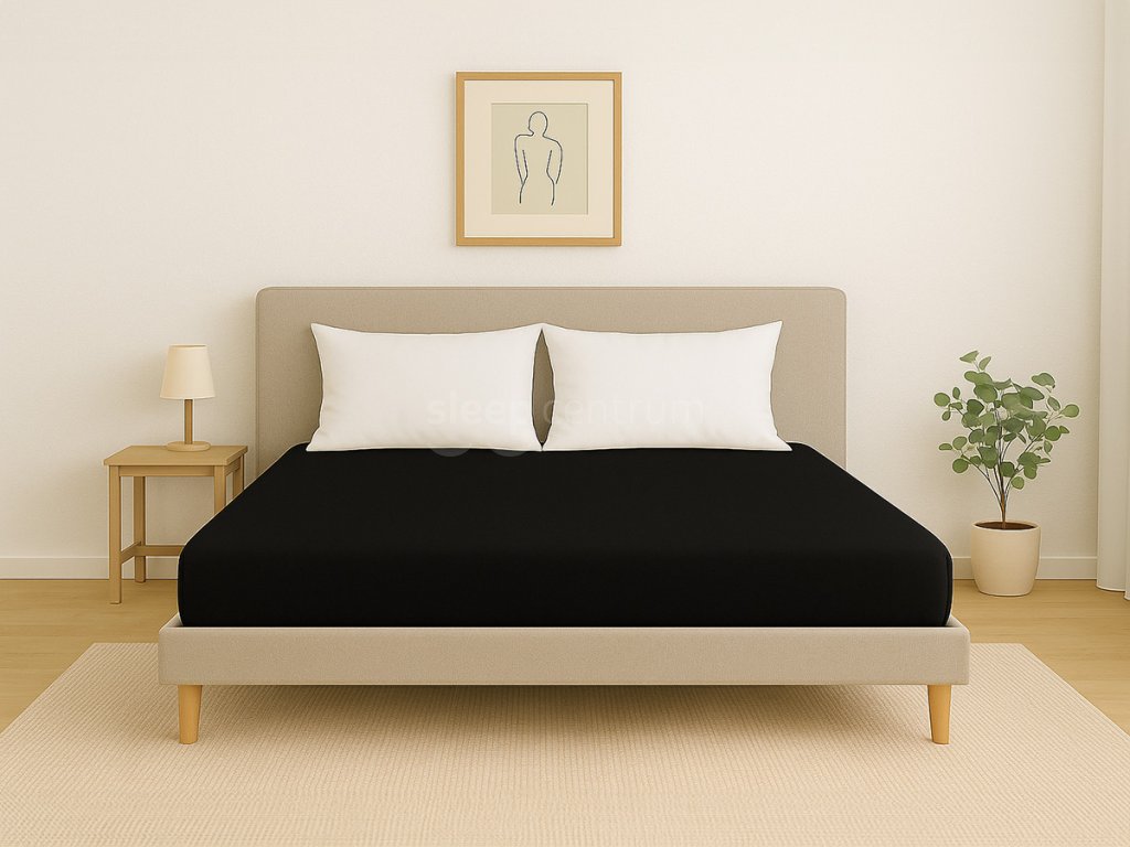 Napínací jersey prostěradlo v černé barvě je vyrobeno z 95 % bavlny a 5 % elastan. Kvalita prostěradla je podtržena vysokou gramáží, která činí 190 g/m2. Gumy po celém obvodu zajišťují dokonalé napnutí na matraci. Prostěradlo je vhodné pro matrace až do výšky 30 cm.