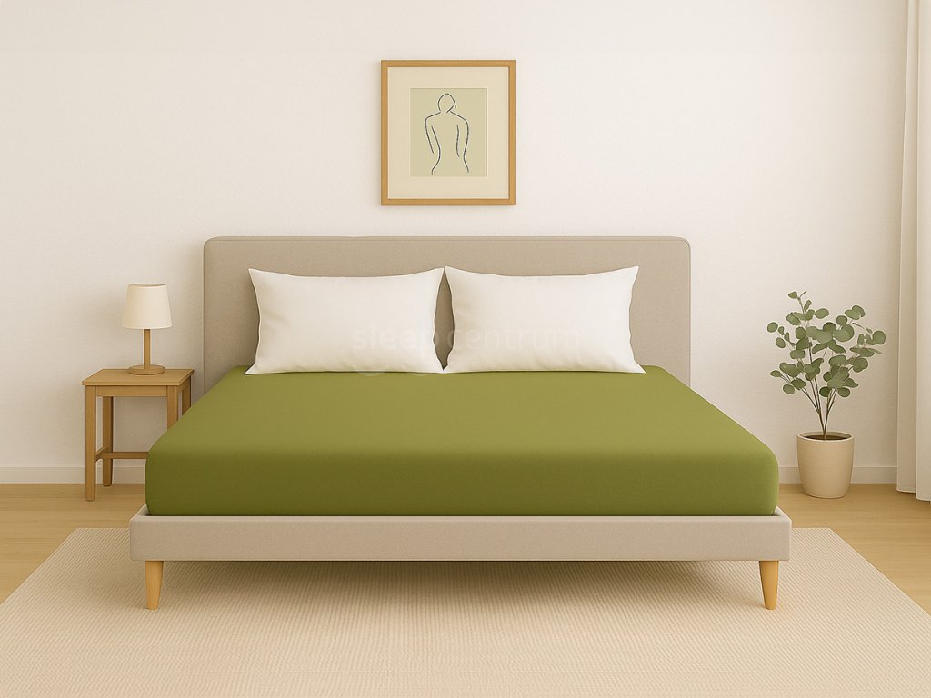 Napínací jersey prostěradlo v hráškové barvě, vhodné pro matrace až do výšky 30 cm. Kvalita prostěradla je podtržena vysokou gramáží, která činí 190 g/m2.