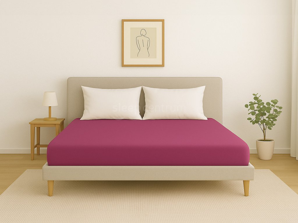 Napínací jersey prostěradlo ve vínové barvě, vhodné pro matrace až do výšky 30 cm. Kvalita prostěradla je podtržena vysokou gramáží, která činí 190 g/m2.