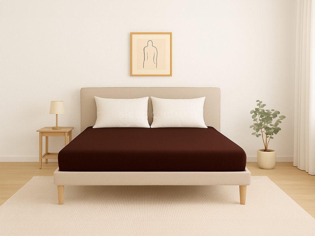 Napínací jersey prostěradlo v tmavě hnědé barvě je vyrobeno z 95 % bavlny a 5 % elastan. Kvalita prostěradla je podtržena vysokou gramáží, která činí 190 g/m2. Gumy po celém obvodu zajišťují dokonalé napnutí na matraci. Prostěradlo je vhodné pro matrace až do výšky 30 cm.