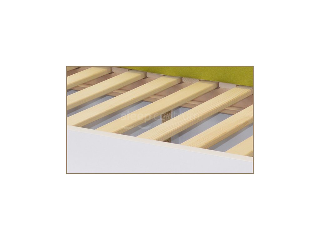 Postel je vyrobena z laminotřískové desky tloušťky 38 mm a je opatřena zaoblenými rohy pro vyšší komfort a bezpečnost.