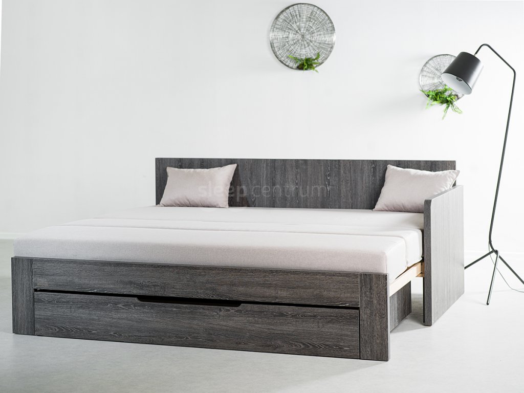 Fotografie postele v provedení Dub černý je pouze ilustrační. Jedná se o původní variantu dekoru Dub černý. Aktuální vzorek naleznete pod odkazem na vzorník dekorů.