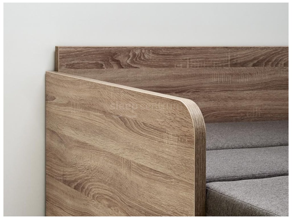 Postel Tandem Arco je vyráběna z kvalitní laminofolie firem Egger a Kronospan, má pevnou a stabilní konstrukci. Materiál má tloušťku 32 mm a je opatřen ABS hranami, které zajišťují větší odolnost proti poškození.