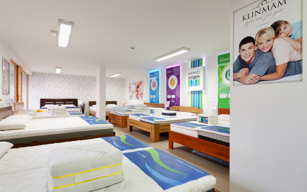 Na prodejně v Praze 9 naleznete více než 150 m2 prodejní plochy. Vystaveno přes 35 matrací, 15 postelí a velké množství lůžkovin, roštů, přikrývek, polštářů, povlečení a anatomických polštářů k vyzkoušení. Velké množství drobného zboží (lůžkoviny, náhradní díly, polštáře, masky na spaní) máme skladem s možností přímého nákupu.