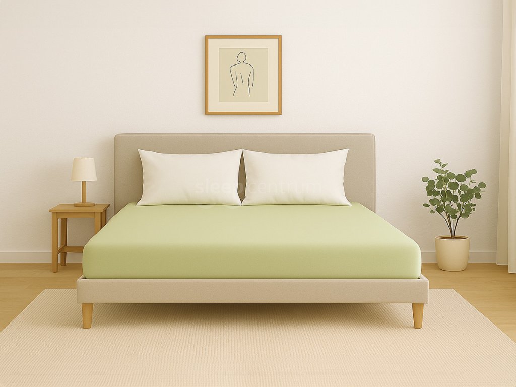 Napínací jersey prostěradlo v hráškové barvě je vyrobeno z 95 % bavlny a 5 % elastan. Kvalita prostěradla je podtržena vysokou gramáží, která činí 190 g/m2. Gumy po celém obvodu zajišťují dokonalé napnutí na matraci. Prostěradlo je vhodné pro matrace až do výšky 30 cm.